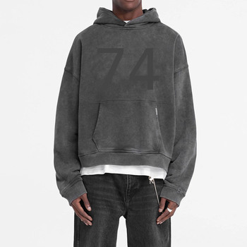 Толстовка от производителя оригинальная уличная одежда 500GSM Тяжелая Y2K минеральная винтажная потертая темно-серая мужская Толстовка